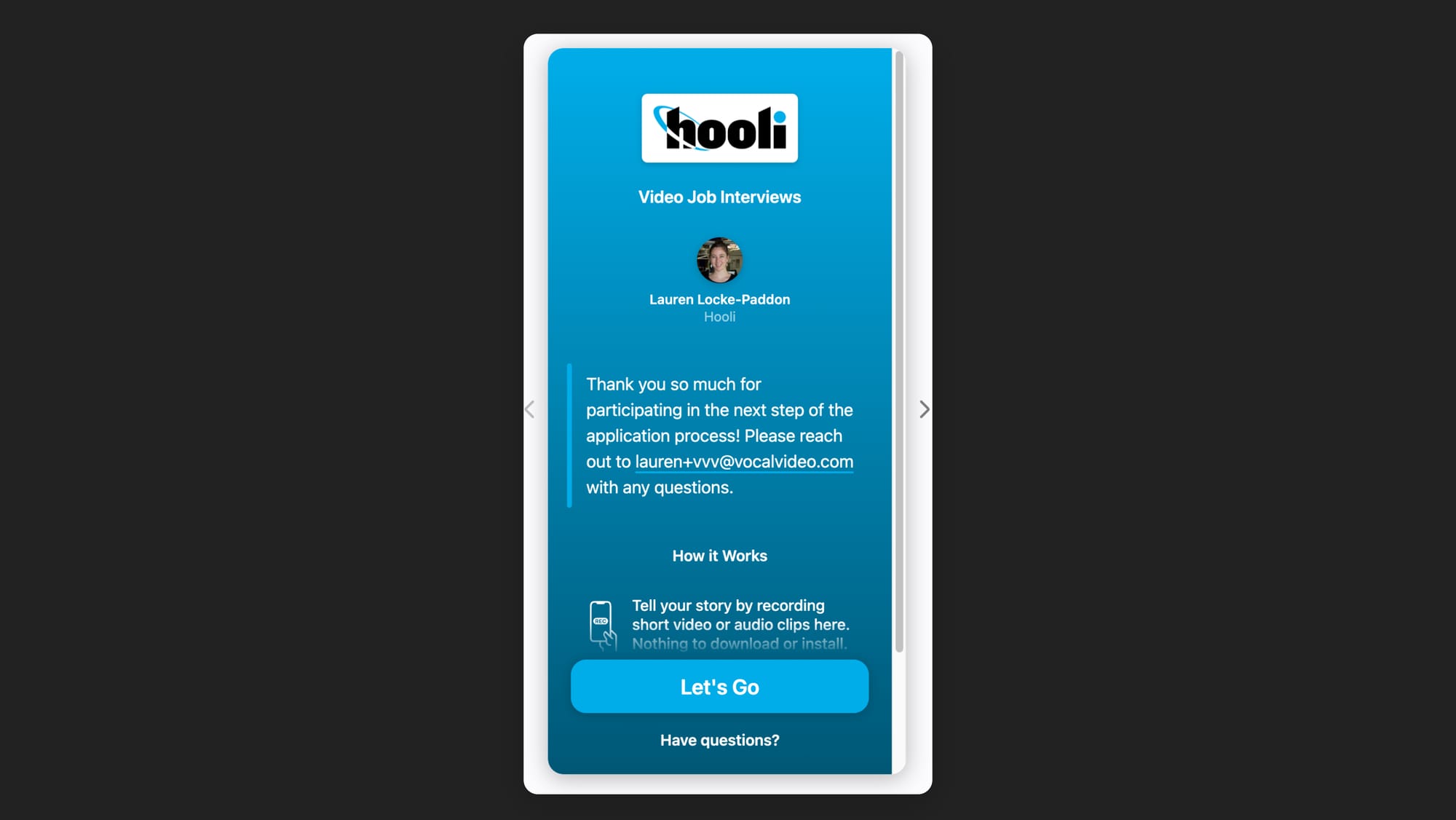 In contrast, we feel that a dedicated interviewing platform — like Vocal Video — puts job seekers at ease because it’s specifically designed to make collecting asynchronous video interviews easy.