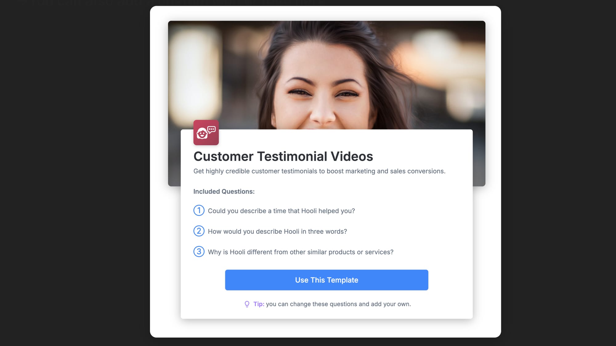 For example, if your ideal video would feature a customer talking about how much your service helped them grow their business, simply ask: