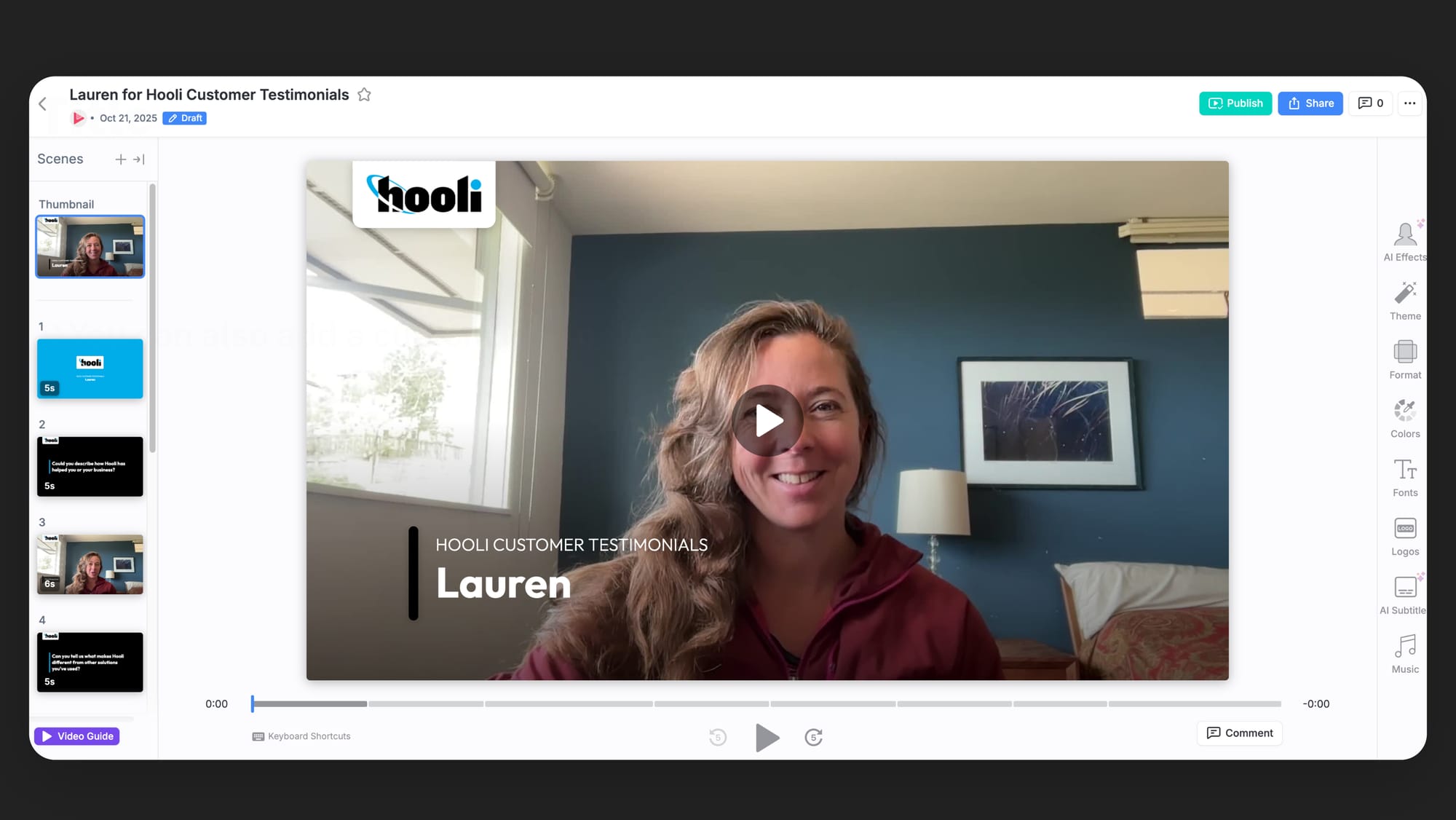 If you want to make any changes — from trimming a clip, to changing the order of the responses, to adding a final slide with a compelling call to action or product link — we also include a suite of intuitive editing tools to make it easy.