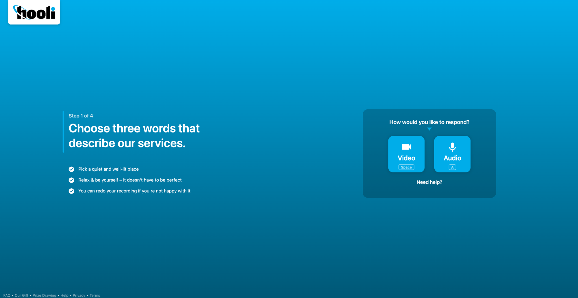 Once they’ve read the question and are prepared to respond, they simply choose whether they’d like to record their video review as video or audio.
