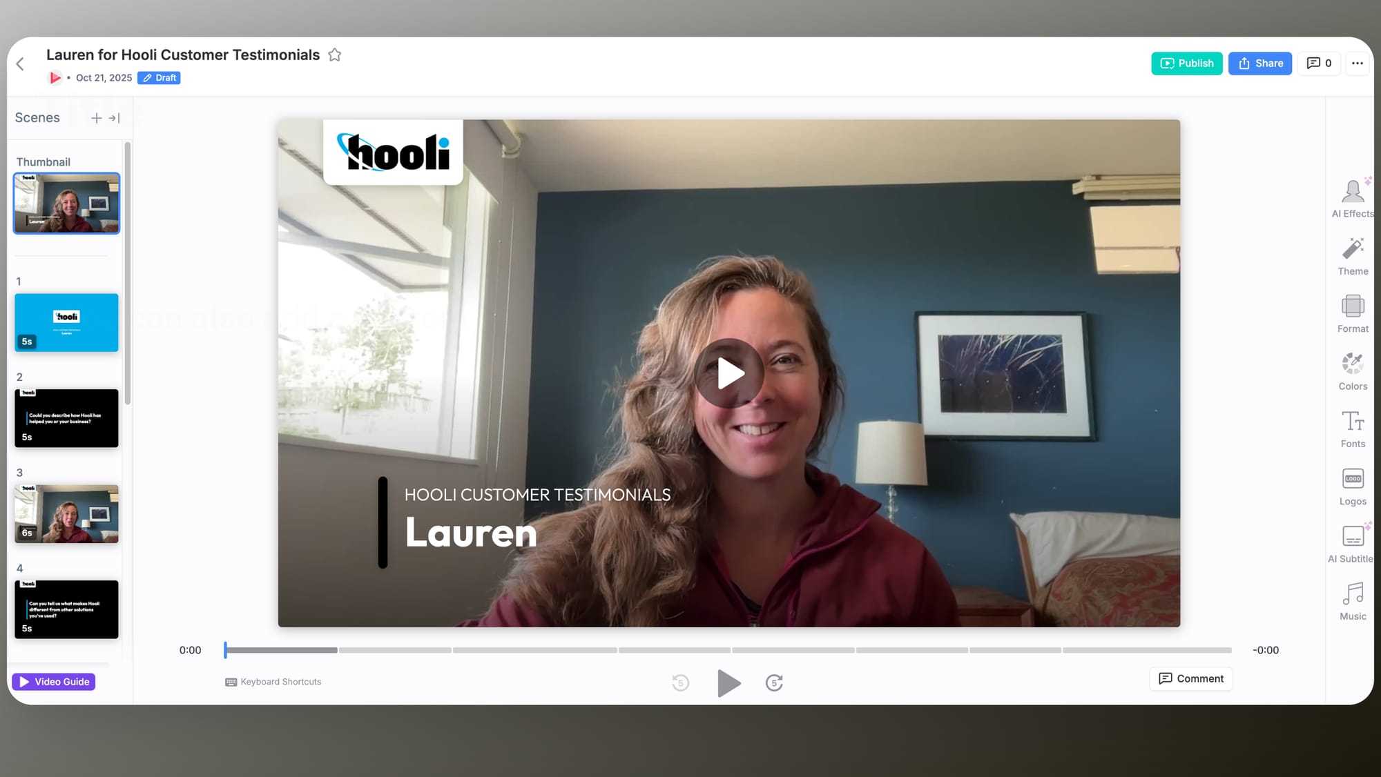 So, the initial video you receive already includes everything you need to publish it directly on your website, on social media, or any other marketing channels, even before you’ve edited it using our platform’s in-built tools.