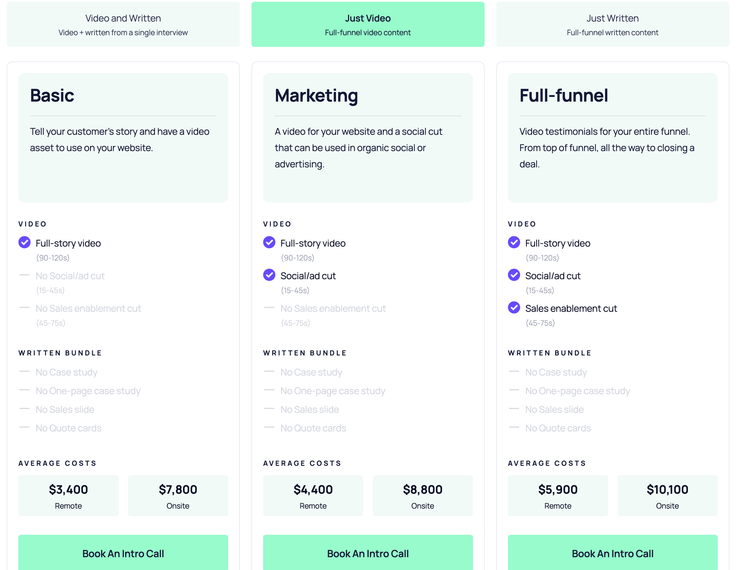 - Optional social/advertising cuts of your video testimonials on more comprehensive plans.