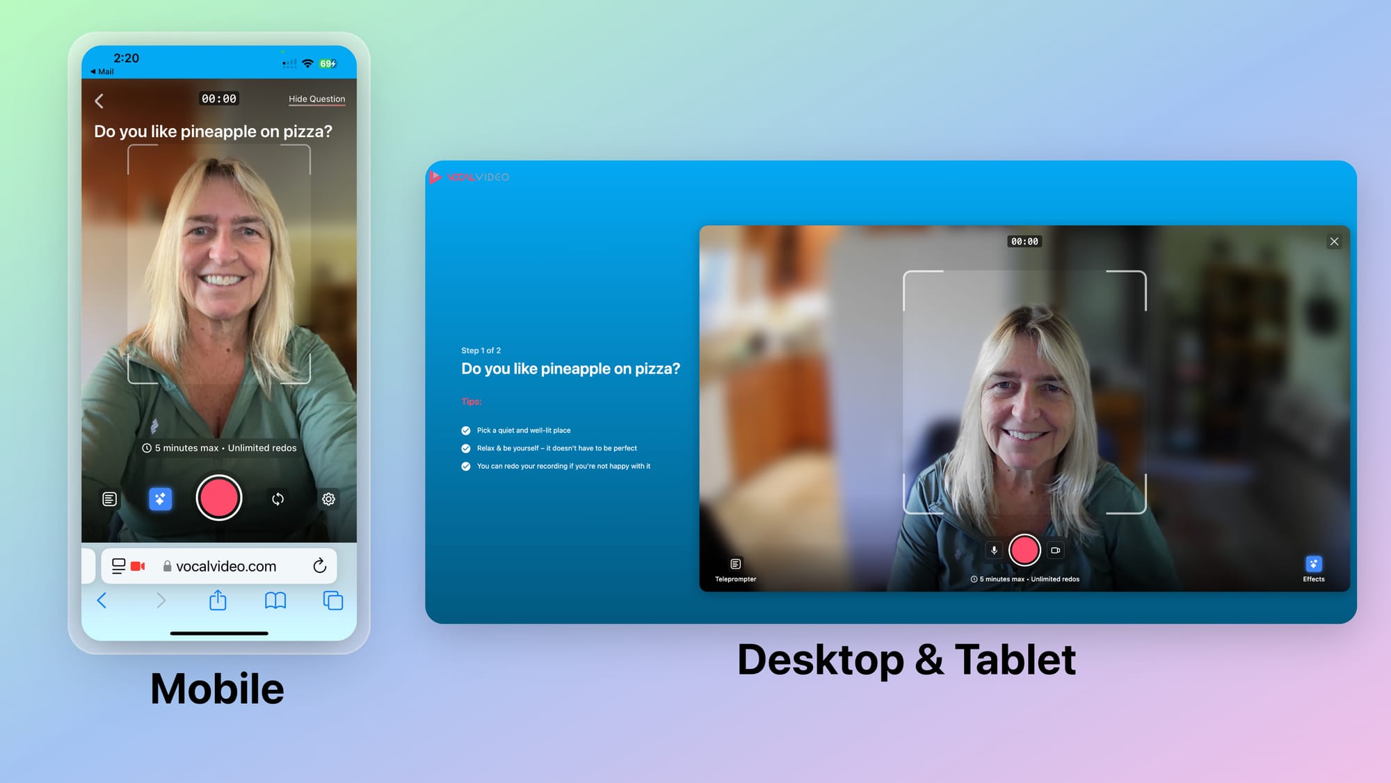 As mentioned earlier, Vocal Video makes it easy for your customer to record their own video footage.