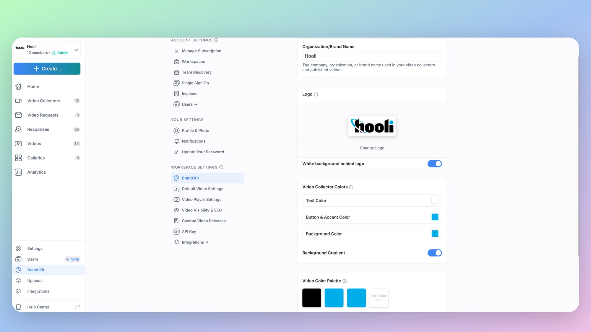 - Branding colors and logos you can define before collecting a single video that will be added to your video drafts automatically (more on this below).