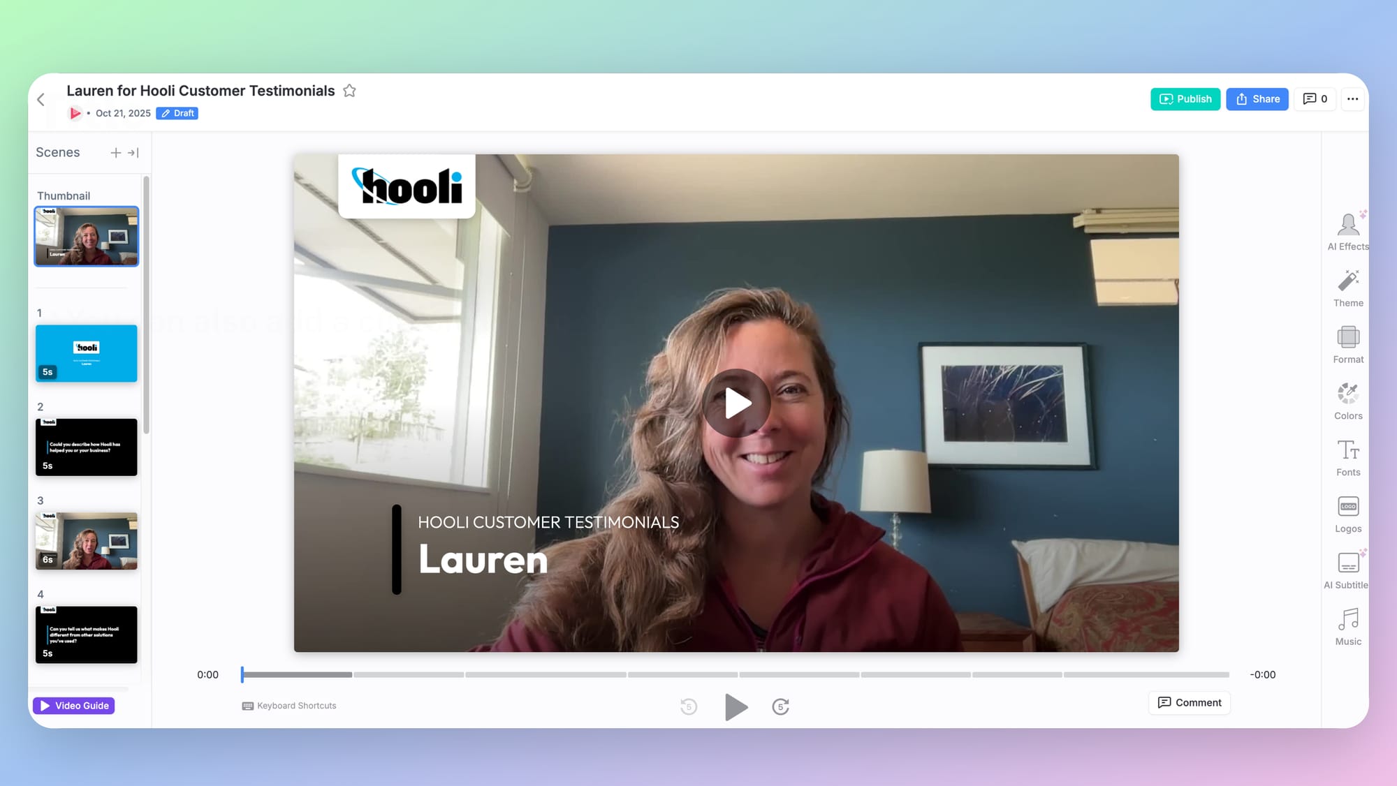 If you want to make any changes to the testimonial, our manual editing features also give you control over how the finished product looks and sounds, and they’re easy and intuitive to use. You’ll be able to: